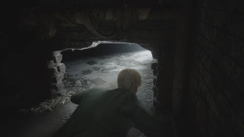 Через туалеты пройдите в огромное помещение с душевыми. Следуйте до конца, где из отверстия в стене вам удастся вытащить тяжелую гирю.