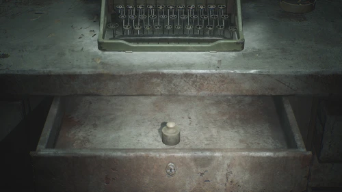 Изучите печатное устройство на столе директора и несколько раз нажмите на кнопку взаимодействия. После того как вы напечатаете оставшееся слово, в письменном столике откроется емкость с легкой гирей.