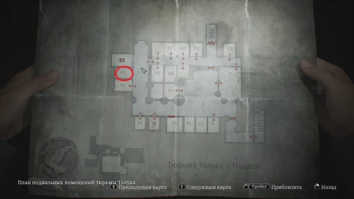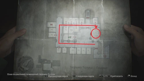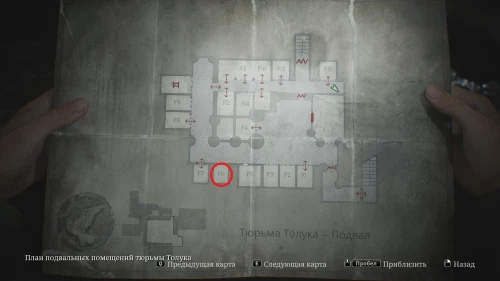 На карте также будет отмечена лестница в камере F10, куда вы сможете попасть через соседнюю F9, разломав в ней стену.