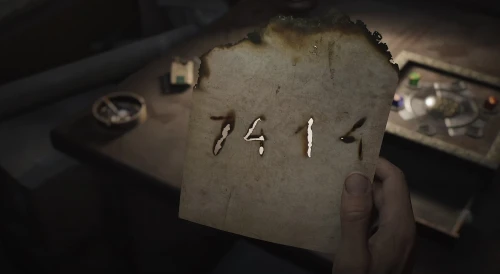 Внутри шкатулки вы обнаружите листок бумаги с кодом от сейфа. Возвратитесь к хранилищу и откройте его, введя пароль 7414 (он одинаков для всех уровней сложности). Внутри вы обнаружите Ключ от подвала.