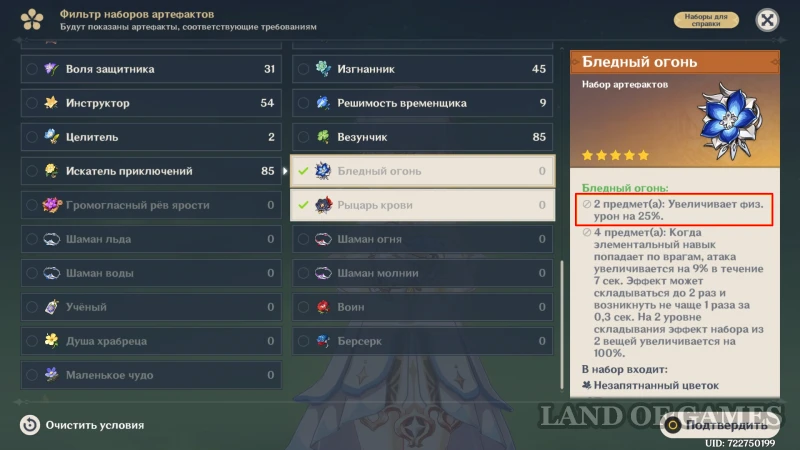 - Усильте физ. урон Путешественника, надев на него артефакты с бонусом к белым атакам. Подойдут по два куска Бледного огня и Рыцаря Крови, либо наборы на увеличение силы атаки (берите две части с каждого комплекта, чтобы активировать только первые бонусы).
