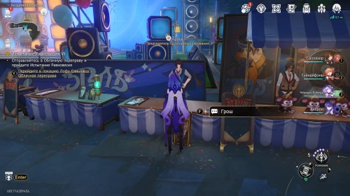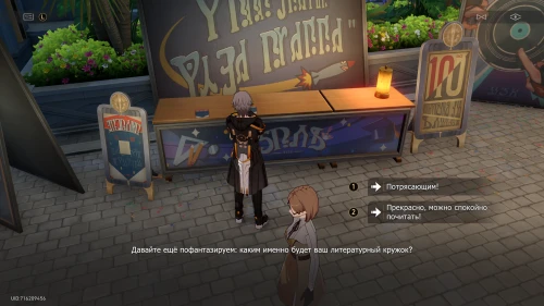 При разговоре выбирайте вариант ответа «У тебя есть ко мне дело?». Далее пообщайтесь с Грошем, который все так же стоит за прилавком в Коридоре культуры. Затем пройдите в самую восточную часть локации, где находится Творческая ярмарка и пообщайтесь с Габбаной.