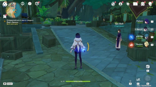Снова возвратитесь в Порт-Ормос и пройдите в центр отмеченной области, чтобы началась кат-сцена с Кавехом и аль-Хайтамом. После беседы с ними идите к месту сбора в местной таверне, где вы повстречаете Фарузан.