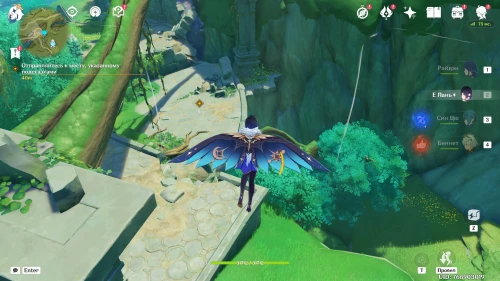 Отойдите немного от друзей и поболтайте с Арасакой. Расскажите Сайно и Кандакии, что вы знаете, где искать Нилу. Затем переместитесь к статуе Дендро архонта на юге и спланируйте на запад в сторону руин. Внизу вы обнаружите Нилу.