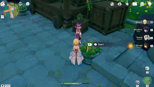 Телепортируйтесь к телепорту на верхушке города Сумеру (западная часть), а затем продолжайте подниматься наверх по каменной дорожке, и на площадке, где ранее стояла карета, вы обнаружите Дендро Архонта. Пообщайтесь с ней.