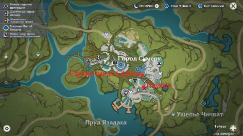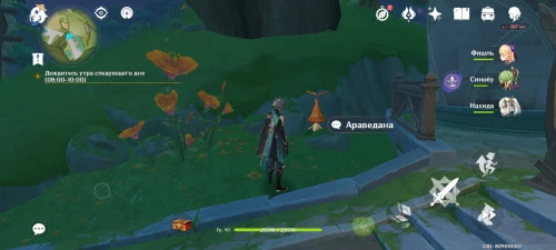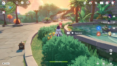 Также на праздник пришли четыре аранары. С фамильярами Дендро Архонта можно взаимодействовать, но как только они поймут, что были замечены человеком, то тут же исчезнут. Далее мы отметим места, где они прячутся.