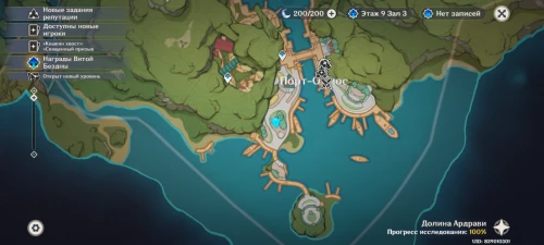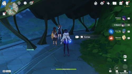Теперь переместитесь к центральному телепорту города Сумеру, а потом поднимитесь ко входу в Академию, но не входите в нее, а сверните влево. Здесь вы обнаружите Странника, разговаривающего с Сетосом.