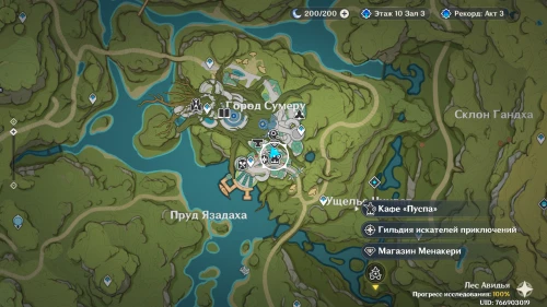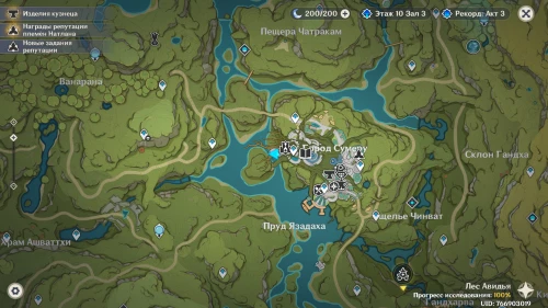 Стоит неподалеку от самого южного телепорта города Сумеру.