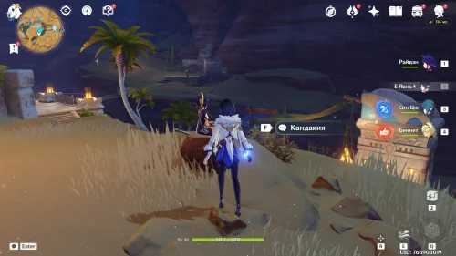 Переведите время на вечер (19:00-22:00), а затем переместитесь в Деревню Аару, поверните направо и пройдите на край выступа. Здесь вы обнаружите Кандакию, играющую на музыкальном инструменте. Поболтайте с ней.