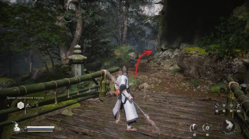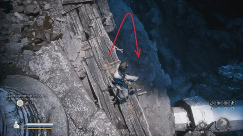 Следуйте вперед по горной тропинке, пока не дойдете до деревянной ее части. Спрыгните с нее на нижний уровень и следуйте через пещеры до тех пор, пока снова не наткнетесь на обезьяну, прячущую Скандху мыслей в каменной голове Будды.
