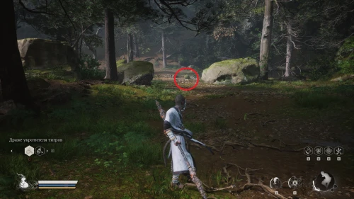 Победите его и летите дальше. Добравшись до озера с пожелтевшими деревьями, сверните в правую сторону. Следуйте между скал и сразитесь с боссом Большая охранная табличка.
