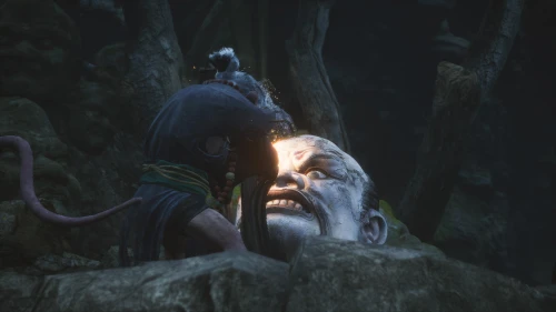 В противоположной стороне вы сможете заметить сидящую на очередной каменной голове обезьяну. Подойдите ближе и после катсцены вы сможете забрать Скандху выбора.