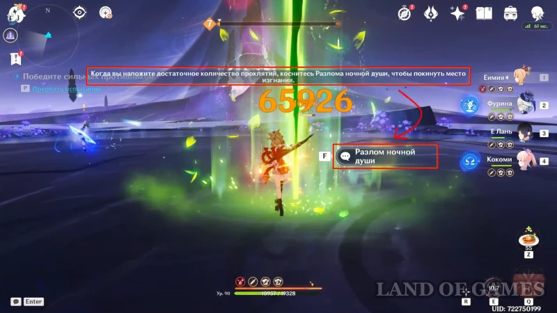 Помимо периодического истощения ХП, вас будет дамажить дендро поляна под врагами – не заступайте на нее, если атакуете героями дальнего боя, либо возьмите для атак пиро персонажа, который способен избавиться от зеленой области под мобами. На видео выше мы показали, как с помощью пиро атак, Еимия снимает под врагом зеленую полянку.