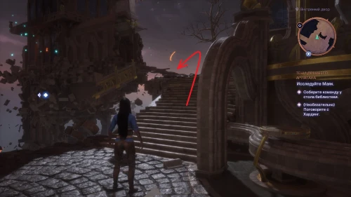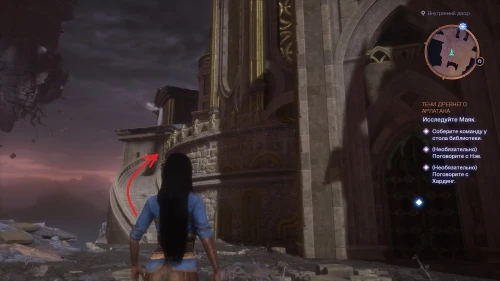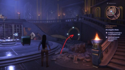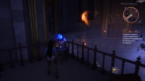 Как только второй шар окажется на месте, войдите в открытый портал и активируйте голубой кристалл на балконе библиотеки. Не забудьте также забрать весь лут из сундука.