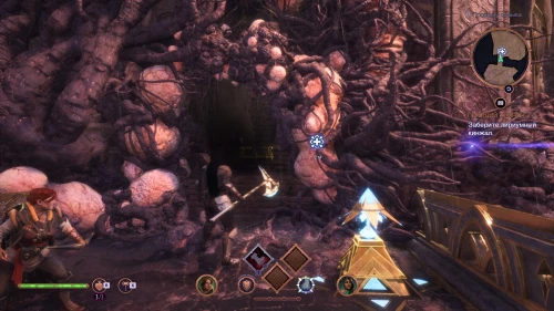 Теперь, когда стена из скверны нальется красным цветом, вы наконец сможете прорубить дорогу через нее с помощью легкой атаки и продолжить исследование Места проведения ритуала.