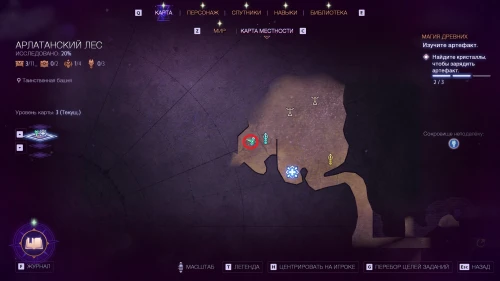 Следующий искомый предмет находится в восточном углу локации Лесная чаща, рядом с сундуком, отмеченным на карте. Разблокировать доступ в эту область можно лишь по квесту Тааш «Охота на Искрозубку».