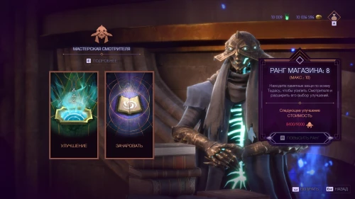 С помощью собранных памятных предметов вы можете улучшить Мастерскую Смотрителя до 10 ранга. Любой вид снаряжения (оружие, броня, кольца, пояса и амулеты) может быть обновлен до текущего ранга Мастерской.