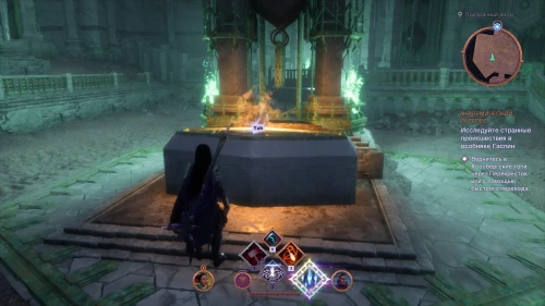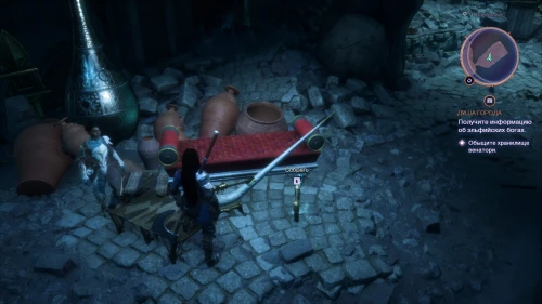Данный предмет, окруженный толпой венатори, вы обнаружите в Храме солнца, во время выполнения сюжетного задания «Кровь Арлатана».