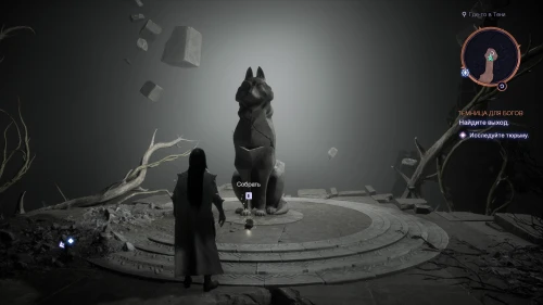 От начальной точки следуйте по дороге слева, пока не доберетесь до скульптуры волка в юго-западной части карты.