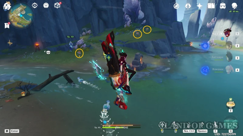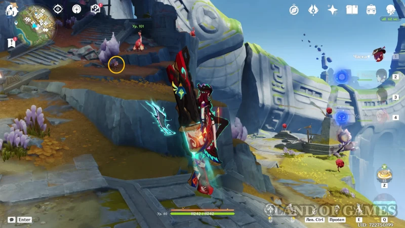 | Первые три персонажа демонстрируют все ближайшие местные диковины Натлана на мини-карте. При этом все они обладают уникальными механиками перемещения по Пиро королевству, что заметно упрощает его исследование. | |