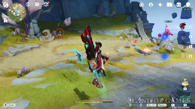 Начнем поиски сухоцветов на юго-западе от единственной в Очканатлане Статуи Архонта. В этой зоне получится собрать 17 экземпляров цветка.