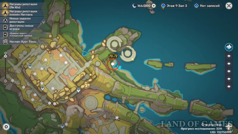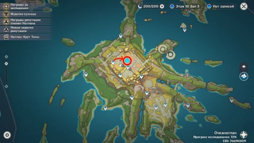 Еще 8 цветков можно заполучить в верхней части Очканатлана. Для этого необходимо переместиться к юго-западному телепорту, а затем спуститься по лестнице вниз на восток и победить фиолетового автоматона. Разобравшись с ним, пообщайтесь с Кенином, а затем откройте богатый сундучок, в котором и будут лежать диковинки.