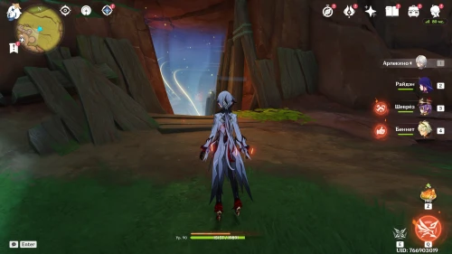 Взаимодействуйте с преградой и отдайте алое обсидиановое кольцо. Внутри пещеры вы обнаружите части двух сетов артефактов: «Обсидиановый фолиант» и «Свиток героя сожженного города», причем 5-звездочной редкости. В центре же можно отыскать Освященный эликсир.