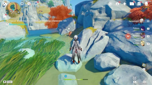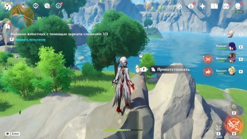 Теперь двигайтесь на северо-запад, перейдя через озеро, и поднимитесь на вершину каменной колонны, на которой вы обнаружите белочку и фигурку Эолы. Поприветствуйте зверька для получения письма от подруги с подарком.