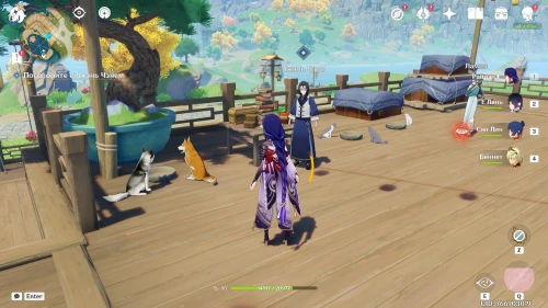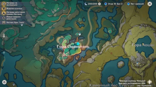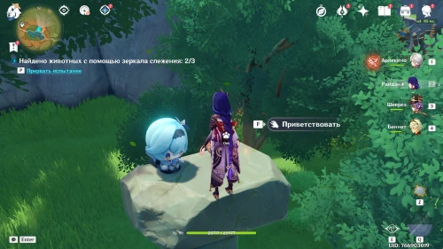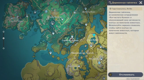 Примитесь за выполнение второго испытания. Вам предстоит найти Крикуна Ху (алый зяблик), Обжорку Ху (белка) и Милашку Ху (лазурный журавль). Искать же их необходимо на территории Горы Сюаньлянь. Переместитесь туда и взаимодействуйте с деревянной табличкой для старта челленджа.