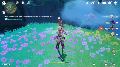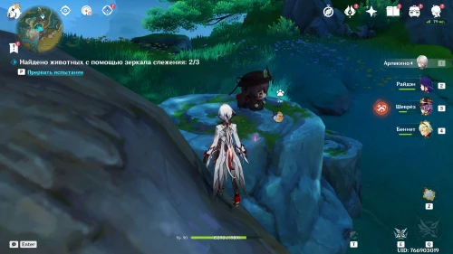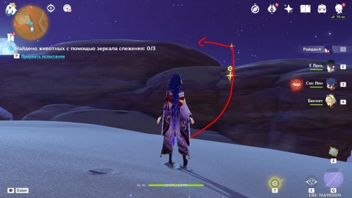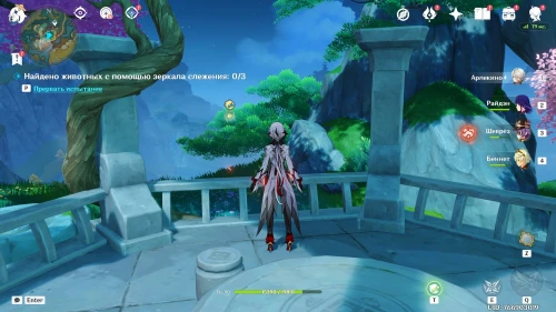 Примитесь за выполнение первого испытания. Вам предстоит найти Холодка (алый зяблик), Уно (белка) и Принца (лазурный журавль). Искать же их необходимо на территории Горы Аоцан. Переместитесь туда и взаимодействуйте с деревянной табличкой для старта челленджа.