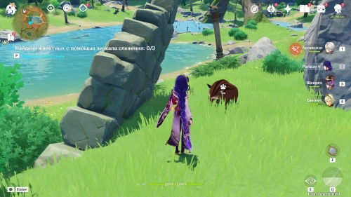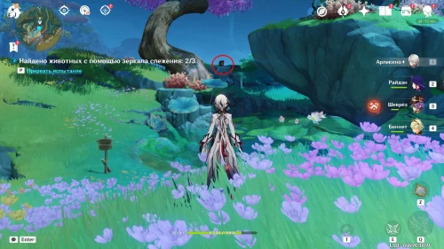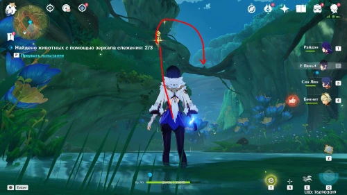 Для поиска животных используйте Зеркало слежения, которым нужно экипировать вашего персонажа (вы найдете его в инвентаре в разделе Инструменты). Нажмите клавишу «Z», и вы увидите, что видит ваша цель. При этом у зеркальца имеется время отката. Впрочем, вы можете полностью игнорировать этот гаджет и просто пройти в места, показанные ниже.