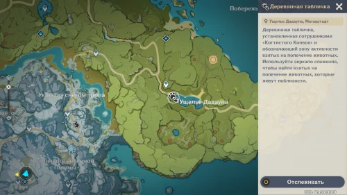 Примитесь за выполнение третьего испытания. Вам предстоит найти Храбреца (лесной кабан), Тыковку (белка) и Помпоночку (алая лиса). Искать же их необходимо на территории Ущелья Дадаупа. Переместитесь туда и взаимодействуйте с деревянной табличкой для старта челленджа.