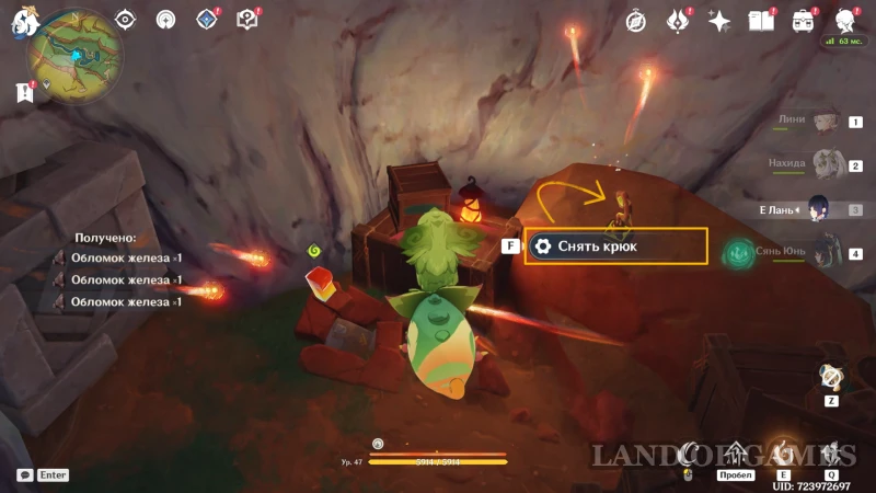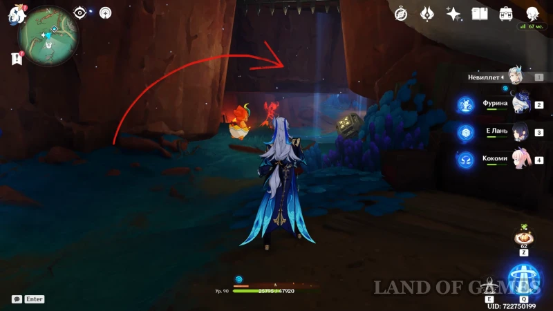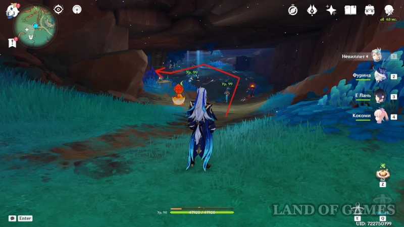 Чтобы приступить к битве с теневым ассасином, напоминающим пиро агента Фатуи, отправляйтесь вглубь пещеры, к которой прилегает данж «Святилище мириадов духов». От участка с группой местных бандитов нужно повернуть влево — перед вами будет проход, ведущий на арену мини-босса.