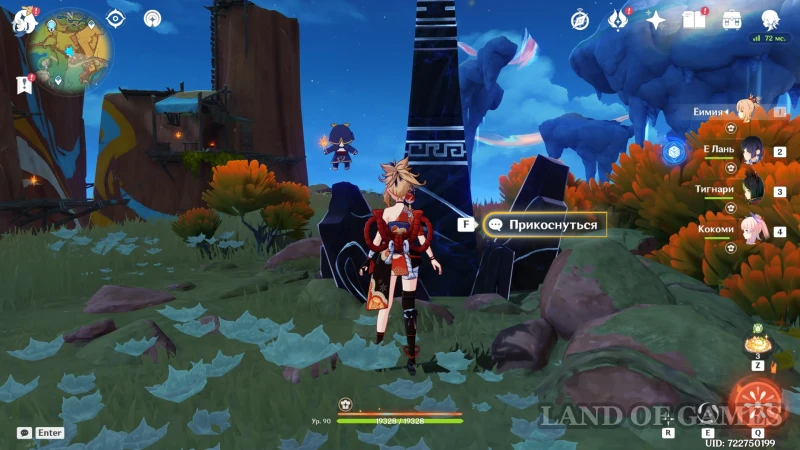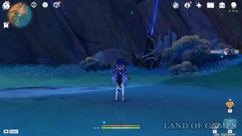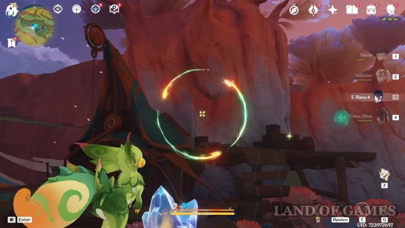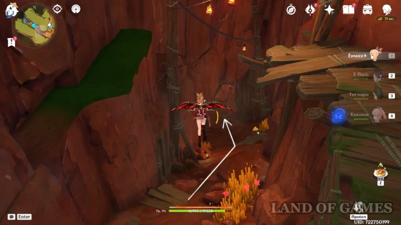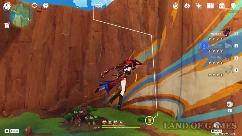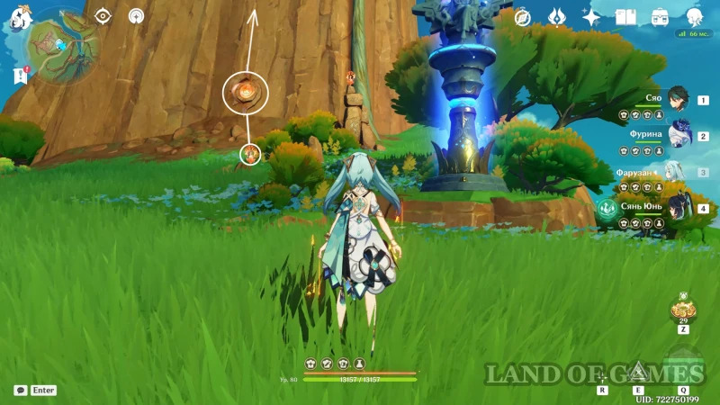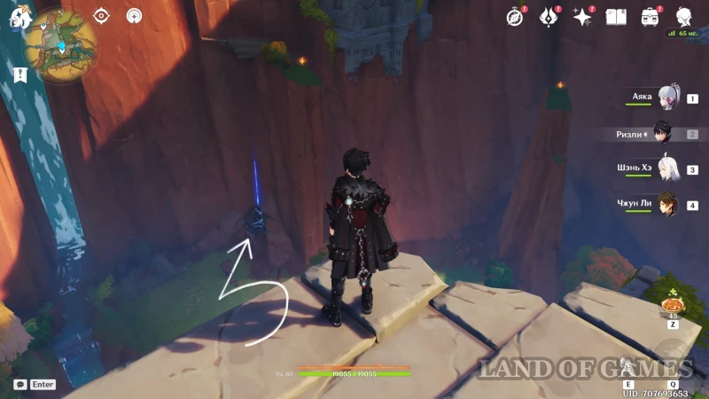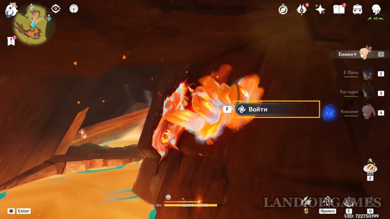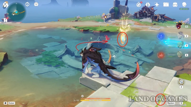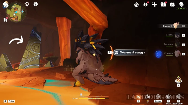 Обратите внимание на скриншот карты в начале пункта: около скалы в отмеченном месте стоит флогистоновый куб, для взаимодействия с которым придется перевоплотиться в гео-завриана (навести камеру на дракона → «Т» на ПК), либо использовать элементальные навыки Качины или Шилонен. Толкните янтарную руду, а затем пройдите испытание, процесс выполнения которого мы показали на видео ниже: