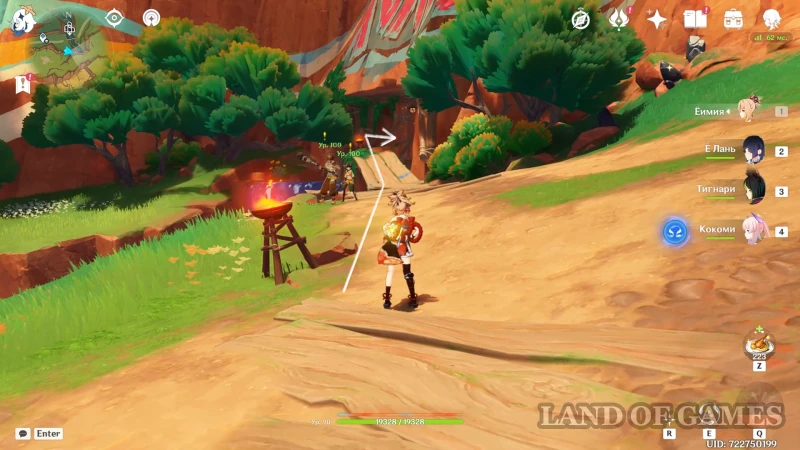 Направляйтесь в северо-западную часть Пиро региона. Трое Фатуи находятся недалеко от точки телепортации на вершине Холма Уитцтли. Забраться туда проще всего при помощи способностей Гео завриана — подобрать его можно у подножия холма.