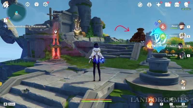 Механическая легенда находится на высоко парящих руинах с телепортом на востоке Очканатлана, и подняться сюда можно несколькими способами. Самый простой: пройти испытание с мишенями на острове к югу от конечной точки (здесь находится одна из печей огненного пламени). Добравшись сюда, подойдите к водоему и, приняв облик кохолозавра (или используя Муалани) толкните ближайшую желто-оранжевую мишень. Весь процесс прохождения этого испытания мы показали на видео ниже: