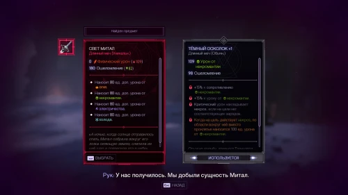 После того как вы корректно ответите на все вопросы Митал и убедите ее оказать помощь, вы получите ее сущность, которая пригодится вам позднее. Вместе с этим вы приобретете уникальное оружие Свет Митал, а также ее благосклонность и 250 очков Силы завесных странников.