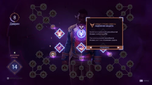 По завершении задания Даврин станет Легендой Стражи завесы, а также получит легендарную броню «Серый покровитель» и уникальный навык «Надежная защита».