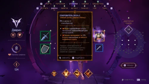 Мастер боя и Покровитель леса особенно хороши для билдов с высоким Ошеломлением. Ошеломление цели и ее последующий взрыв с помощью Даврина является ценным источником массового ошеломления, позволяющего контролировать толпу с помощью оглушения и провести цепочку добивающих ударов.