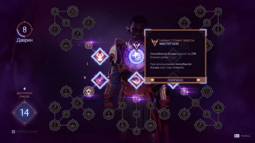Ассан также останется вместе с Даврином, а сам Даврин получит звание Легенды Стражи Завесы, но уже другие награды: легендарную броню «Покровитель леса» и навык «Мастер боя».