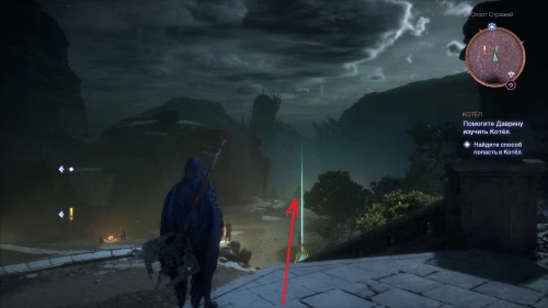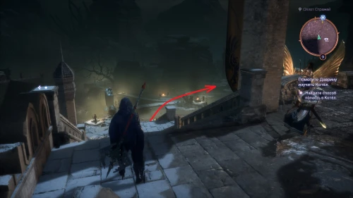 Наверху вы сразу увидите три статуи стража, а также сундук на балконе башни. Чтобы попасть наверх, вам необходимо воспользоваться специальным навыком Даврина, чтобы временно освободить узлы скверны.