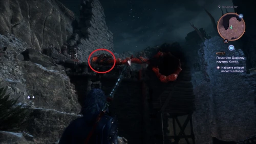 Для того чтобы подобраться к статуям, вам нужно уничтожить дальнобойной атакой два узла скверны, по левую и правую стороны. Как только узлы будут уничтожены, опустится лестница по которой можно подняться к изваяниям стражей.