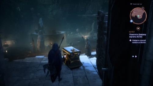 Чтобы решить головоломку и открыть дверь к сокровищу, каждую статую необходимо повернуть лицом к жаровням, расположенным рядом.