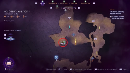 Переместившись по элювиану в Хоссбергские топи, выйдите из Оплота Стражей на площадь Лавендела с точкой быстрого перехода. Следуйте по дороге мимо огромной статуи стража и сверните налево.