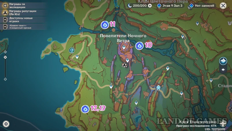 Сокровищницы с 10 по 13 можно получить, если отыскать и пройти испытания с фиолетовыми порталами, сотканными мастерами из клана Повелителей Ночного Ветра. В отдельной общей статье мы рассмотрели, как найти все светящиеся полотна, завершить испытания в подземелье и забрать не только целых 4 драгоценных, но и 1 роскошный сундуки.