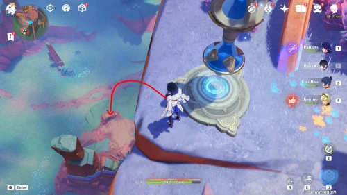 Переместитесь к южному телепорту в поселении Повелителей Ночного Ветра, а затем спрыгните вниз и подлетите к большому каменному кольцу, на которое указывает стрелка, и взаимодействуйте с ним. Вы услышите странный звук «Бух… бух… бух». Вы также увидите заблокированный богатый сундук. Чтобы получить его содержимое, вам предстоит решить небольшую головоломку.