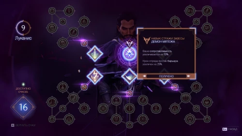 По прибытии в хаб Луканис станет Легендой Стражи Завесы, получит доспех «Стойкость ворона» и особый навык «Демон неповиновения».