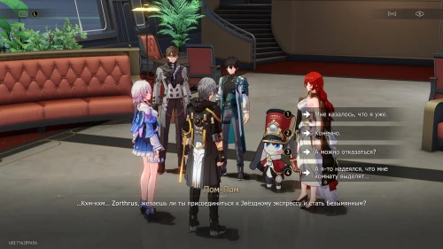 В итоге мы получили следующие результаты (смотрите скриншоты ниже). Вы увидите сценку с Март 7 про доставка. Можете выбрать любого персонажа, так как это не повлияет на концовку или ваши награды (правда, диалог с Химеко будет забавным).