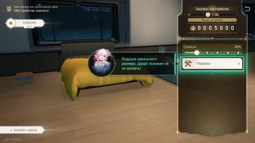 Здесь все довольно просто. Сначала очистите зону спальни, потратив 1000 кредитов фонда экспресса, а затем выберите Базовую мебель (1000 кредитов) и установите ее в комнате. Затем Март 7 принесет вам свою подушку – разместите ее на кровати.
