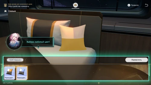 Далее закажите декор, выберите цвет для подушки (какой вам нравится) и разместите ее на кровати. Потом лягте на свою кровать и поспите. Проснувшись, вы завершите первый квест события.